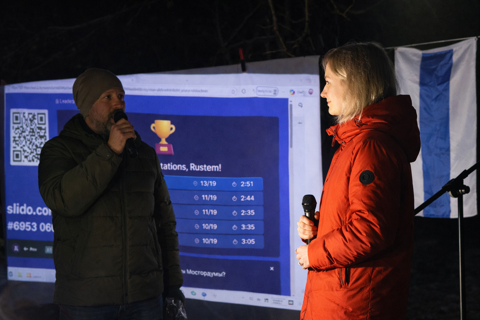 Po hudební části následoval kvíz o životě Alexeje Navalného. Tři vítězové obdrželi dárkové balíčky, které do Prahy dorazily z Vilniusu.