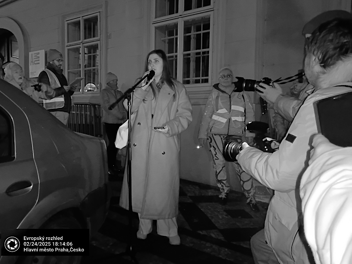Velmi silný proslov předvedla ukrajinská aktivistka Anastasia Sihnaievska, která poděkovala České republice za její neochvějnou podporu Ukrajiny a za to, že ví, kdo je tady agresor a kdo oběť. Ukrajina vždy směřovala k demokratickým principům a západním hodnotám, nezávislosti a svobodě, a právě proto jí Putin napadl a snaží se zničit nejen ji, ale celý demokratický svět.