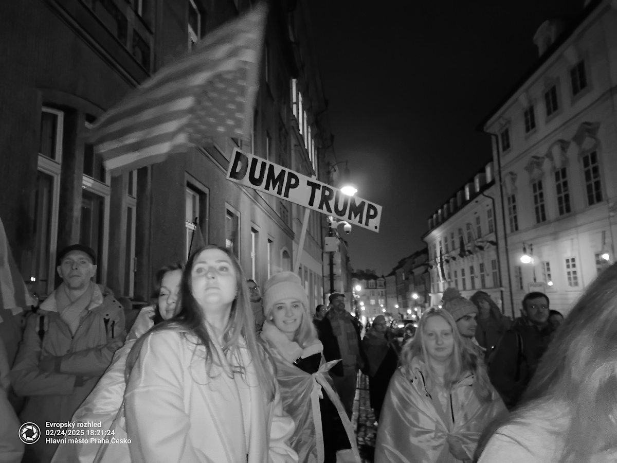 Demonstrující se ostře vymezili proti tomu, jak Trumpova administrativa vnímá ruskou válku proti Ukrajině a její boj za svobodu. Transparent s nápisem „DUMP TRUMP“ byl jasnou výzvou k odstavení Donalda Trumpa z politiky. Anglické slovo „dump“ znamená zbavit se něčeho nepotřebného či dát někomu kopačky.